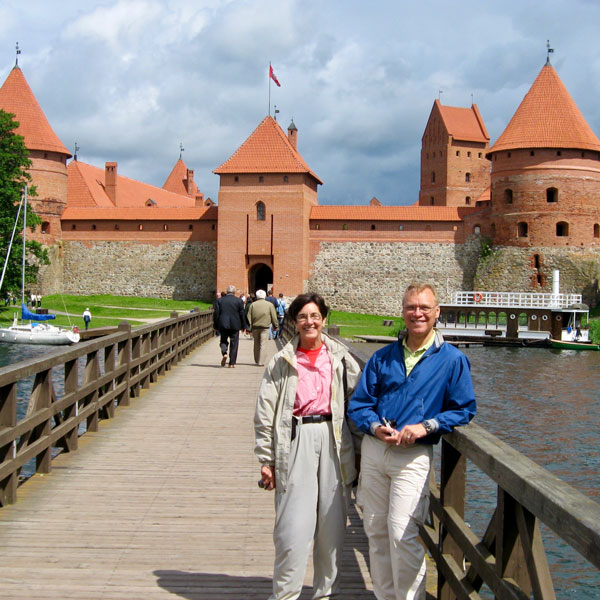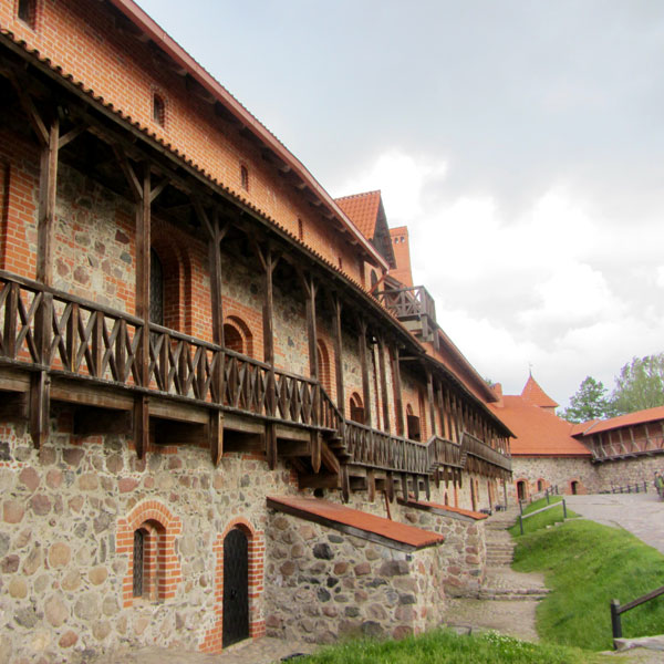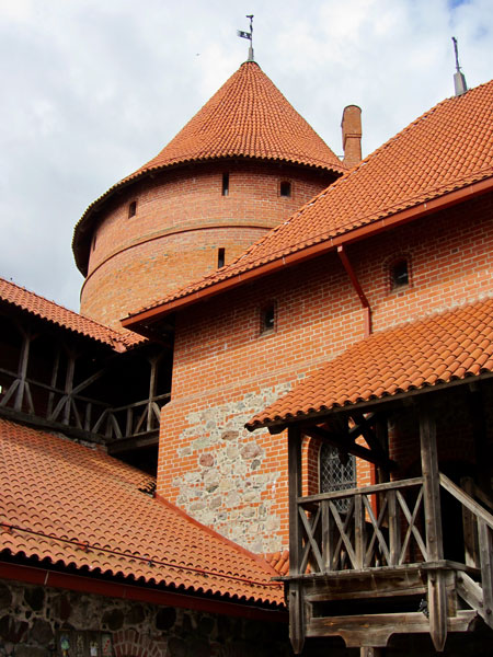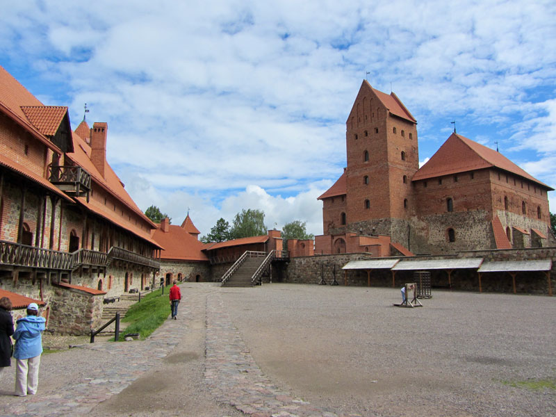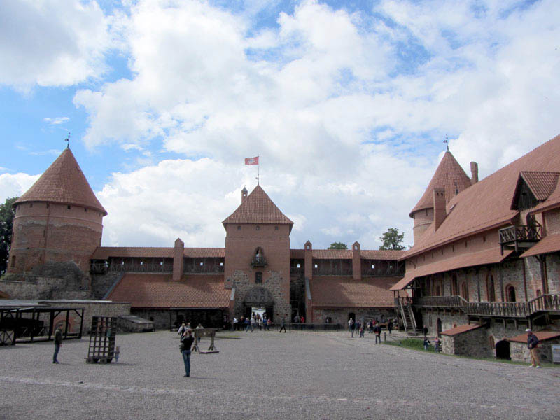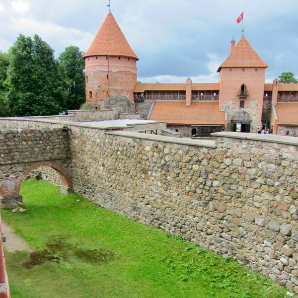 Some background on Trakai Castle: By order of Grand Duke Kęstutis, construction of a stone castle began on the largest of three lake islands in the 14th century. Major works were completed by his son, Grand Duke Vytautas the Great, who died in 1430 in this castle without ever being crowned as King of Lithuania. Its location was considered strategic for defense, until the Polish-Lithuanian army defeated the Teutonic Order in the Battle of Grunwald, after which its importance diminished and it fell into ruin. Then, after years of various uses, from fortification to palace to guest residence to romantic ruin, reconstruction was begun by the Lithuanian people (with resistance from their Soviets overlords) into what we see today: a popular tourist destination.