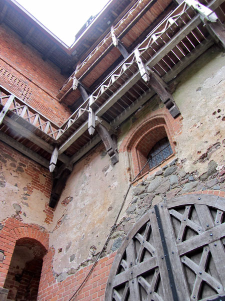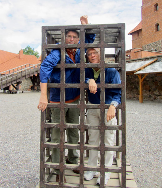 Inside the castle grounds, we skipped the available pillory, opting for a little together time in an iron cage. Once liberated, we began wandering through the various buildings that ringed the open courtyard.